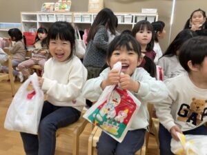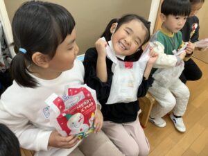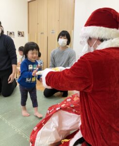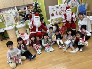 サンタさん🎅ありがとう!!とプレゼントをもらうとみんな感謝の気持ちを伝えていました🥰