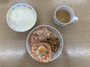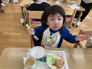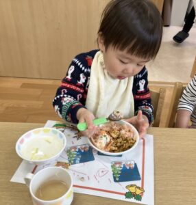 クリスマスメニューのお給食も嬉しそうに食べていました😍