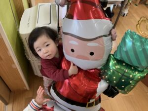 サンタさんの風船とハイポーズ