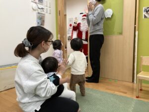 サンタさんまたね✨ 0歳児さんとタッチ✋