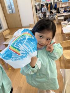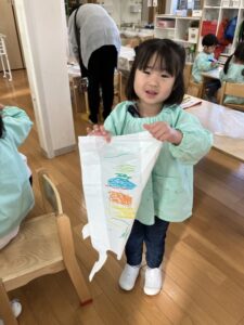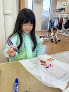 ビニール袋凧づくりでは、好きなイラストをマジックで描きました✨