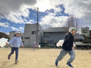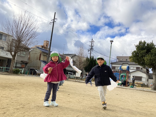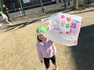 伝統あるお正月遊びを自分たちで作り、寒い中でも凧あげで思いっきり身体を動かし