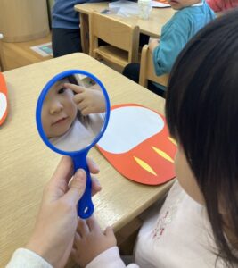 1歳クラスになると顔の位置がわかるようになってきますね👀