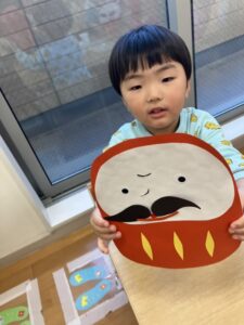 確認したあと、だるまさんの顔を貼っていました🥰