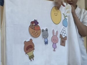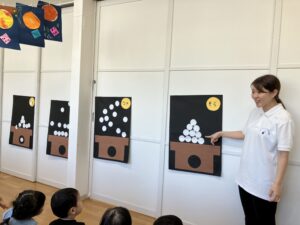 お月見のパネルシアターを見たり「月」の歌を振付きで歌ったりしました♪