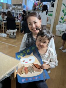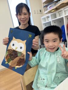 幼児クラスは、保育参加までにこどもたちがふくろう🦉の制作を進めていました。