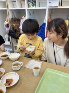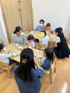 お家では、食べない野菜も保育園では食べていて驚きました😧と感想があったり、椅子に座って先生の話を聞いたり楽しんでたりする様子をみて参加してよかったですとおっしゃっていただきました。