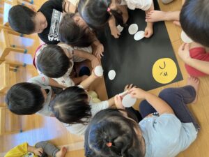 保育園では、0.1歳クラス 2.3.4.5歳クラスに分かれてお月見会をしました。
