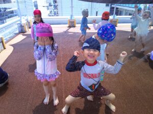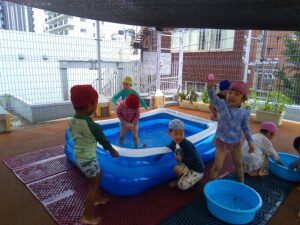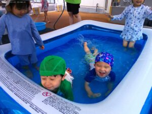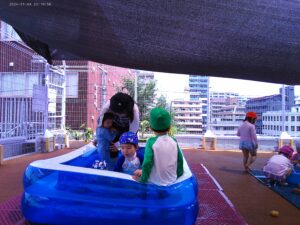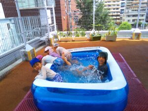 幼児クラスは、屋上に用意したプールで遊びました🎶