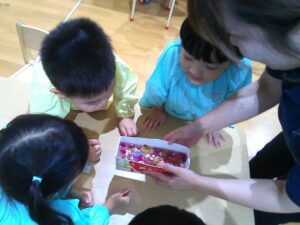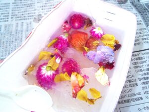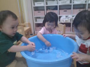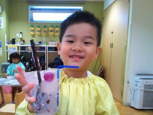 水の中に花を入れて凍らせたものを見せた時、驚く子ども達の表情が印象的でした😊