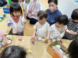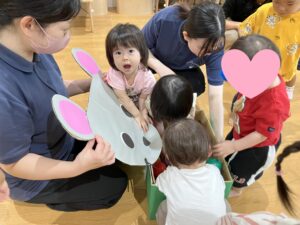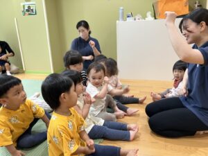 未就園の子も最初はドキドキした表情でしたが、保護者と一緒に参加だったので、少しずつ慣れてくると楽しそうに遊びだす姿がありました🌟
