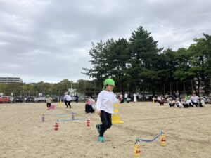 そら組さんは、網くぐり、おもちゃのフライパンでボール運び、ハードルの障害物をかっこよく乗り越えて元気にゴールしました!✨