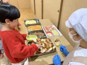 そしてこの日のほし組さん(3歳児)の給食は、バイキング形式!