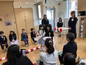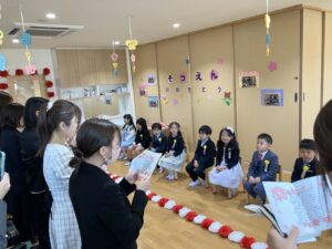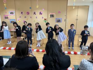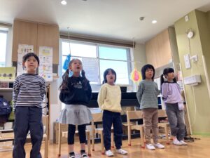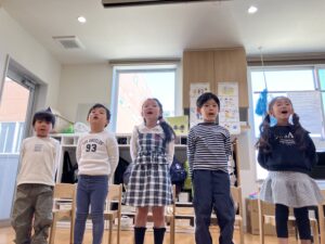 歌いながら少し目がウルウルしている子もいて、保育園での思い出を思い出しながら歌っているようでした。