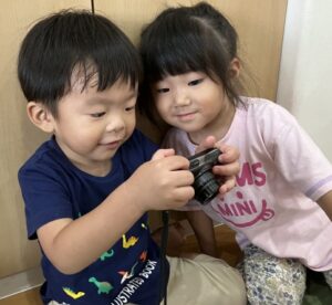 本物のカメラを渡して子どもたちが撮りたいものを撮影しました。