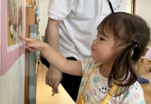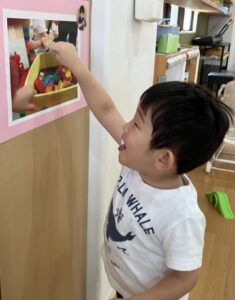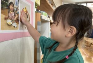どこにしようか、よーく考えて貼ってくれています。何度も、みつけて貼ってましたね!