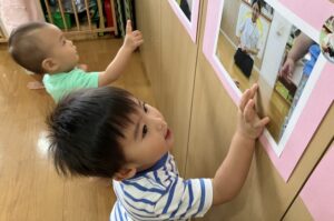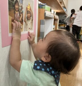 小さいお友達も「おつきさま」を握りしめてママと一緒にぺったんと貼ってくれています。笑顔がとってもかわいいですね!