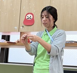 目隠しをしないで、だるまさんの顔を作っていきます。