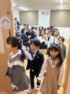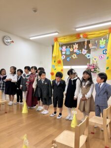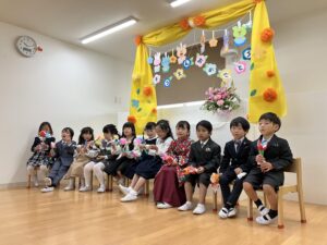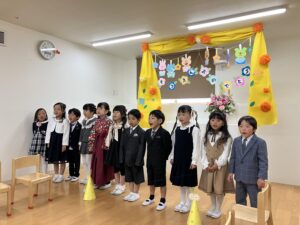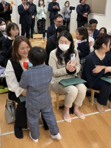 歌の途中にさみしくなって涙する場面もありましたが、お友達や保護者の方々の優しい雰囲気に包まれて、最後まで頑張りました。