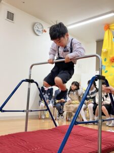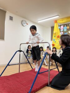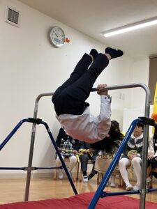 鉄棒は前回りや連続逆上がりで大盛り上がりでした。