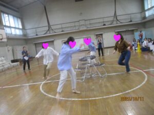 保護者競技は「椅子取りゲーム」です!!男性・女性に分かれて行いました。どちらも白熱しながら、とっても盛り上がり応援している子ども達も大興奮です!!