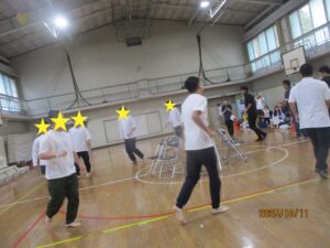 まずは準備運動!!音楽に合わせて、しっかり体操をして準備万端です!!