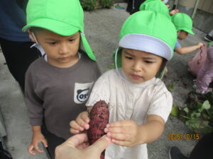 大きいおいもかな?赤ちゃんみたいなおいもかな?みんな、ワクワクしながら掘っていきます。