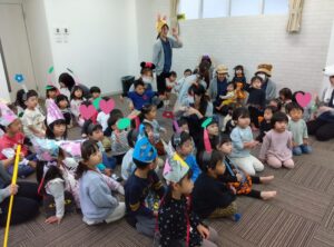 4歳児は、ウィズブック絵本に出てくるヤドカリの帽子