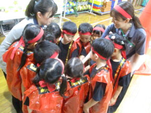 ほし組(3歳児)は、忍者やくノ一の衣装を着て「勇気100%」を踊りました。