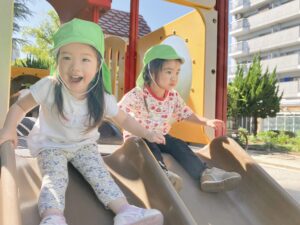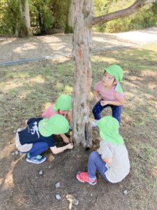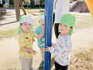 公園に着くと大好きな遊具で遊んだり落ち葉探しや虫探しを楽しみました。