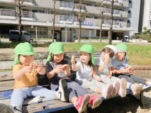 たくさん遊んだ後は、お楽しみのおやつタイム。