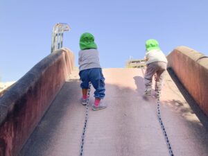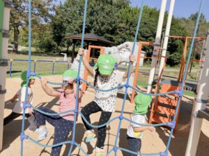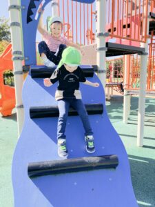 公園に着くと、大きな広場にある大型遊具に夢中になって遊びました。