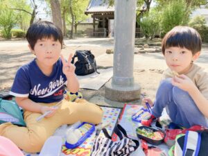 普段、よく遊びに出掛ける場所ではありますが、今日はみんなでおやつを持ってのお出掛け🍘