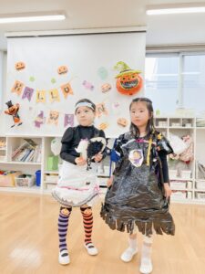 出し物のハロウィンクイズをしたり、それぞれのコスチュームを付けて記念撮影もしました。