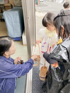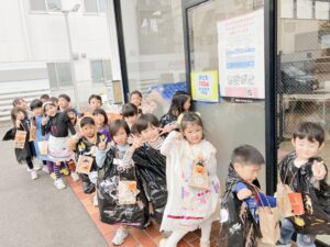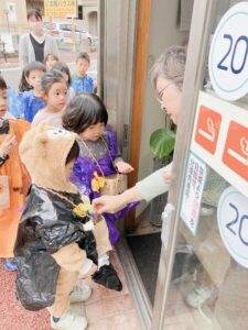 ご近所のHondacarsさん、新聞屋さん、タバコ屋さんにご協力をいただいて、お菓子をもらいに