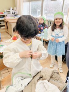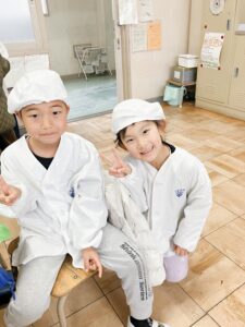 次に、給食の白衣を着る体験もさせてもらいました!