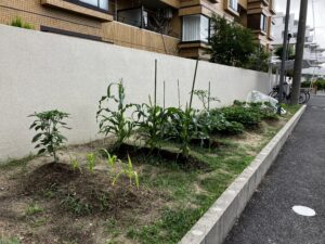 4月に保護者の皆さんと一緒に畑づくりから始めました。
