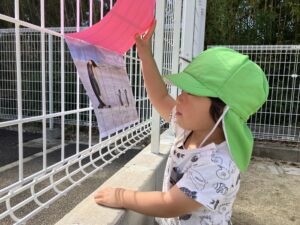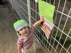 ★園庭にいろいろな動物の写真が隠れているのでみんなで探しに行きます★