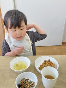 全力で豆まきをした後は、お楽しみの給食です🍽️🎶