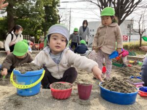 一人ひとりがイメージを膨らませて楽しんだ、お砂のケーキ作りでした🎶