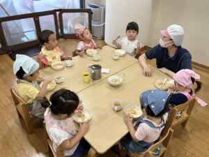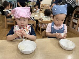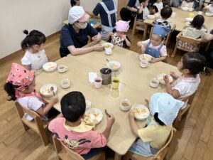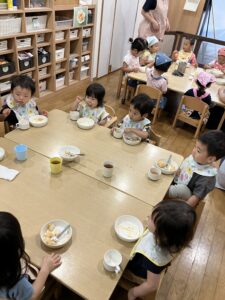 9月の食育では「まんまるおつきさま」みたいな”きなこおはぎ”を作りました。