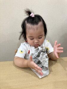薄い新聞紙をとっても上手にぎゅっと握って丸めるお子さんが多く、「とっても力強く丸められるようになったね!」と思わず驚くほどでした😊