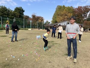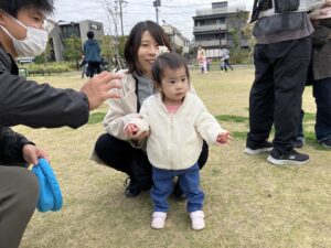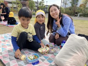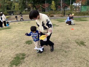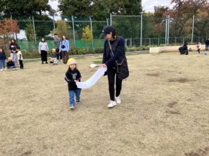 その後は手作りのカバンを持って公園に行き、お菓子を持って待っていた先生を見つけると「トリックオアトリート~!」と大きな声で言えました!