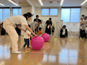 「動物に変身!力を合わせて玉転がし」 「お片づけ玉入れ」