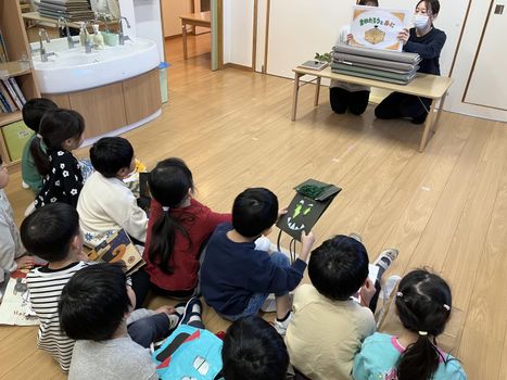 始めは紙芝居とクイズで節分とはどういったものなのかをみんなで知りました。