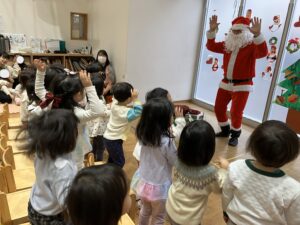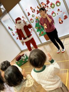 楽しい雰囲気の中で、”クリスマスのうたがきこえてくるよ”の歌をみんなでうたっていると「リンリン、、、」と鈴の音が!