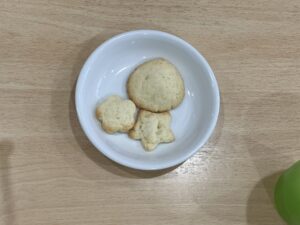 自分で好きな型を選んで型抜きをし、おやつの時間が待ち遠しかったようです。