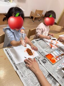 自分で葉っぱを選び、真剣な表情でポンポンとスタンプしていましたよ。素敵な作品が沢山出来ました😊