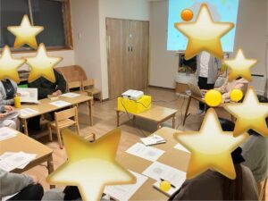 園内で職員研修を行い、より良い保育が出来るよう日々保育を振り返りながら学びを深めています。