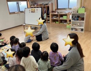 ウィズブックイングリッシュで世界の家を見て建物に興味を持った子ども達。